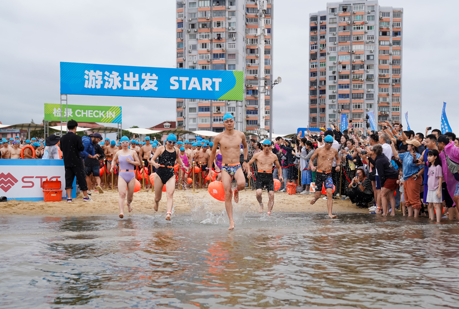 19日上午,上海湾区铁人三项赛巅峰开赛。十年间,该赛事稳步成长,见证金山向“体育+文旅”活力湾区蝶变,也成为铁三爱好者的逐梦摇篮。其“碧海金沙”赛道以“城在海边、赛在城中”的稀缺体验,成为全国爱好者的“必赛清单”。发令笛响,选手们在海中劈波斩浪;自行车赛段沿“金山最美环海公路”飞驰,海风、绿树与大海构成流动画卷,选手们突破体能极限。