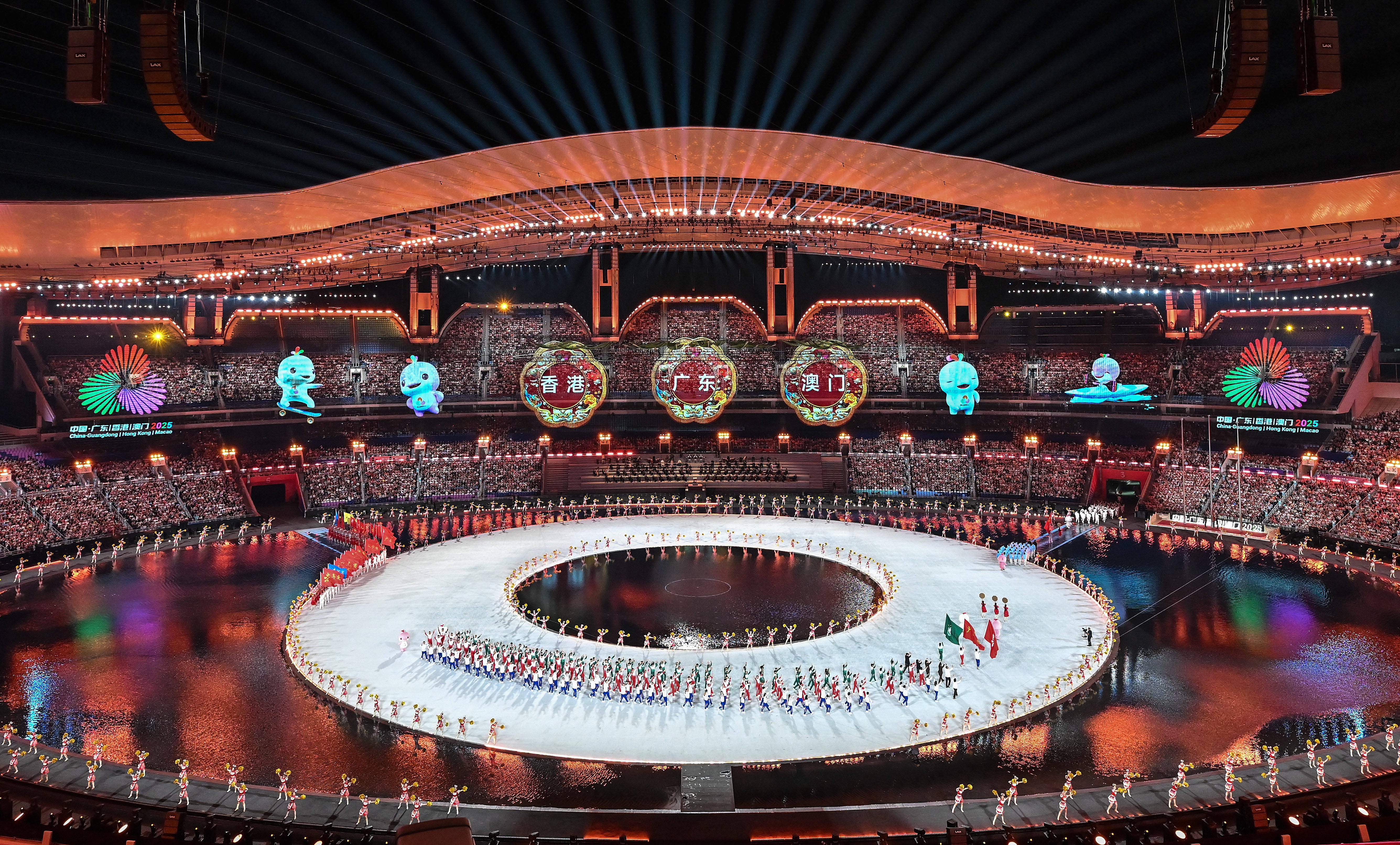 9日晚的广州,奥体中心灯火璀璨,珠江两岸流光溢彩。第十五届全国运动会在这里隆重开幕。这是首次由粤港澳三地联合举办的全国运动会。