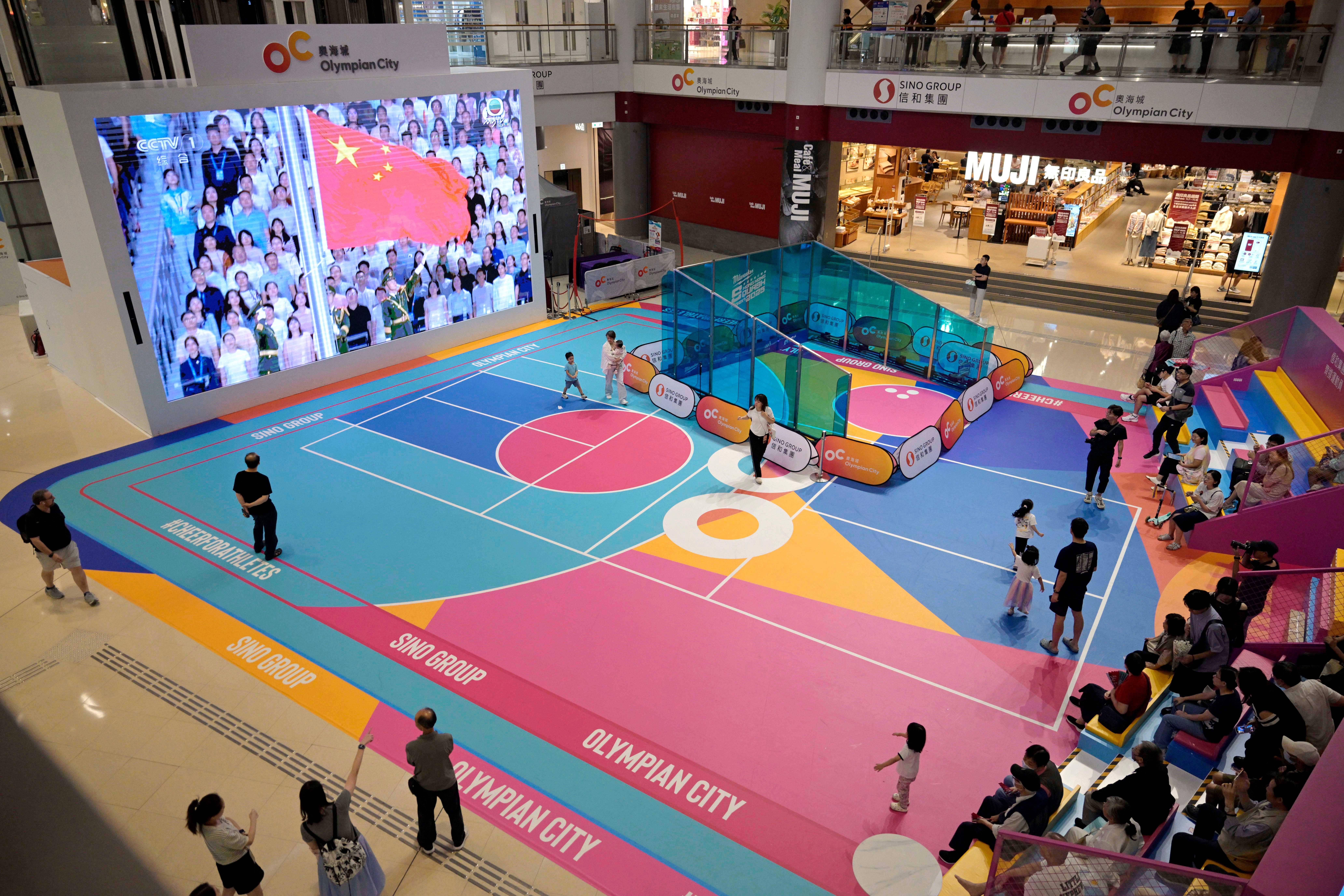 11月9日,第十五届全国运动会开幕式在广东奥林匹克体育中心举行,这是香港市民在一家商场内观看直播。新华社发(卢炳辉 摄)——同心圆之“同”,是血脉同根,是三地同频,更是万众同心共筑中国梦的不竭动力。