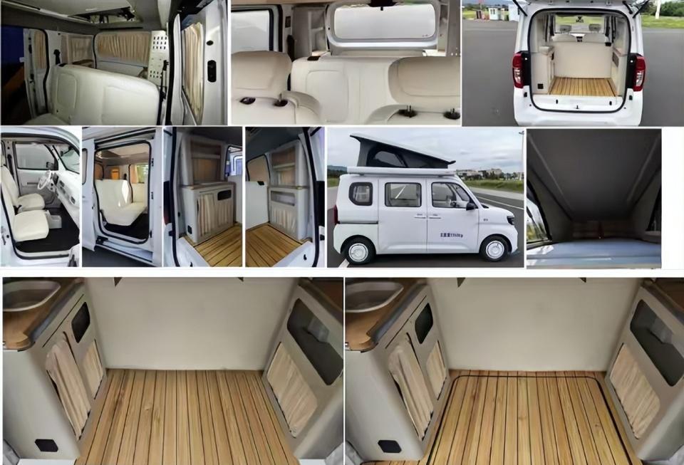 尺寸,新车的长宽高分别为3685x1530x1900mm,轴距2600mm,单就数据其实并不突出,但设计师的厉害之处就是在原有尺寸不动的情况下,内部空间完全优化,从上图能看到,车内还配备了卧具、储物柜,关键是带升顶机构,这你受得了么。其实从侧面看,五菱的这款车与日本在售的K-car比较相似,即便它售价低,但也丝毫没有廉价感。车尾部就非常简单了,小编就不多介绍了。