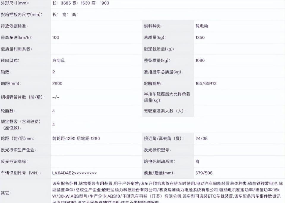 上图就是此次工信部申报的信息,仅供小伙伴们参考!关于动力,新车搭载的是最大功率为30kW的电机,并配备磷酸铁锂电池组。电机依旧是柳州赛克提供的,虽然跑不快,但短途露营够用。关键是价格!遗憾的是续航是硬伤,原车201km/305km的CLTC数据,改成房车后负重增加,实际能跑多少还是个疑问。好在价格优势明显,不知道未来这款车上市能取得怎样的成绩,我们拭目以待!